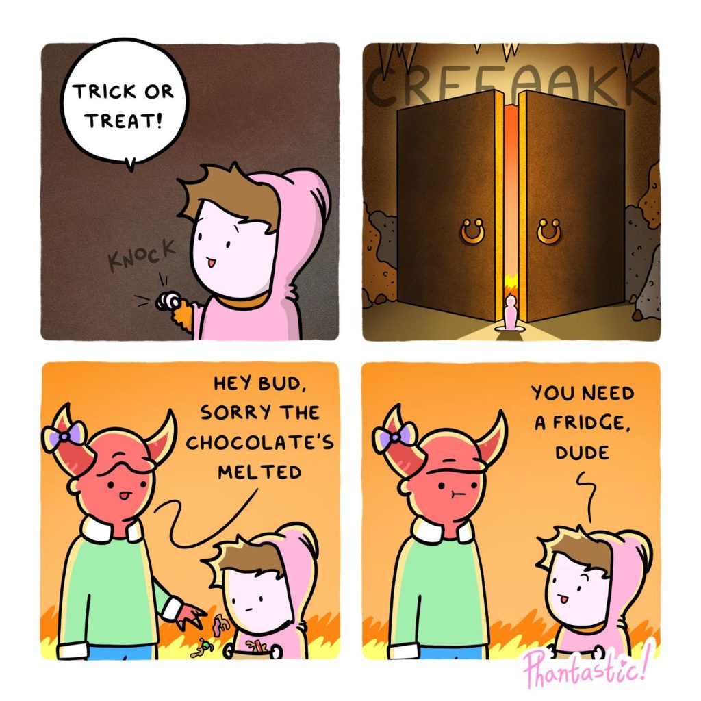 It is saying that kids are not afraid of anything, the artist’s comics make it true after he portrays the humorous bond of a kid and death.