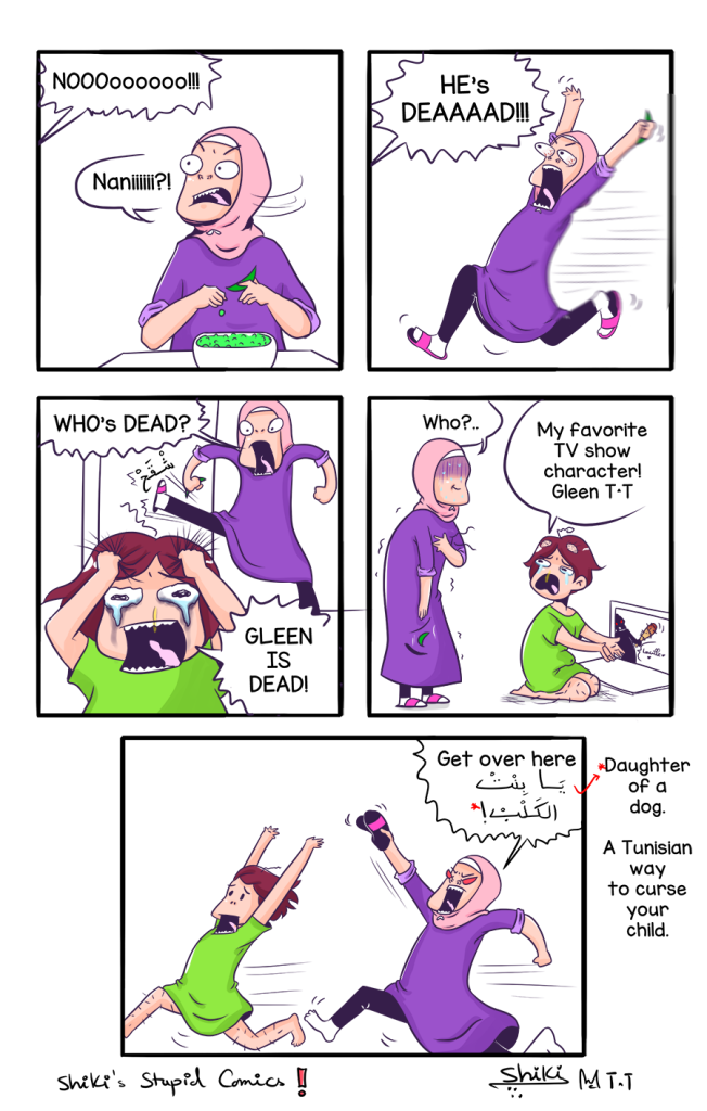 The artist’s comics revolve around the Shiki’s stupid life. The artists also make comics about the her Muslims mom and her traditions to protect Shiki. Whether it’s through religious practices, cultural rituals, or simply motherly advice, her mom is always looking out for Shiki’s well-being. The artist portrays these traditions with respect and humor, showing how they influenced Shiki’s upbringing.